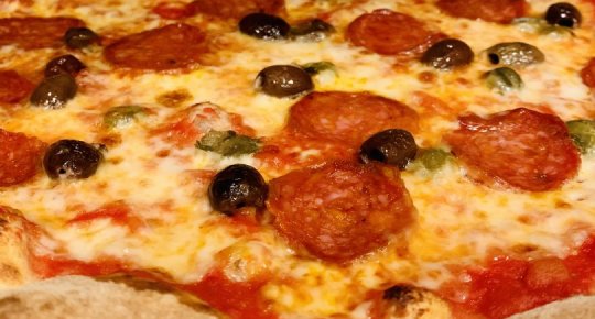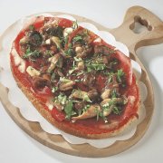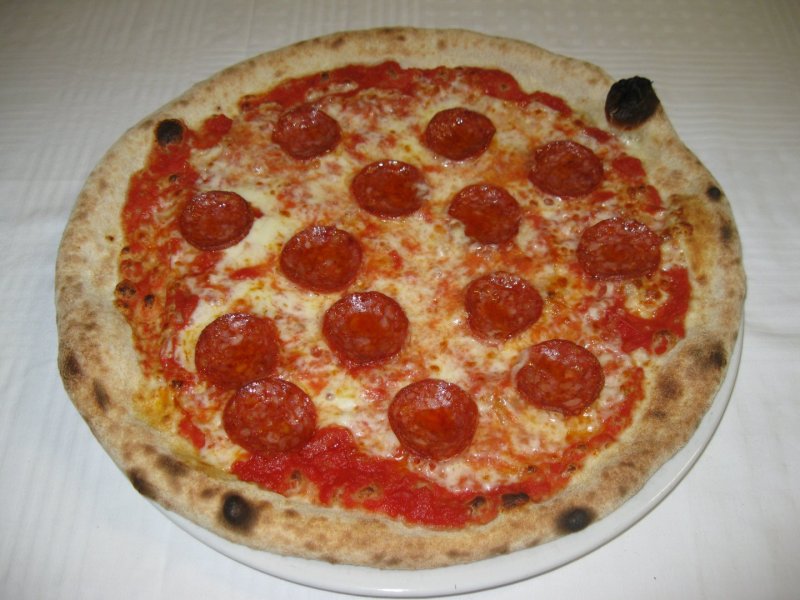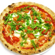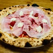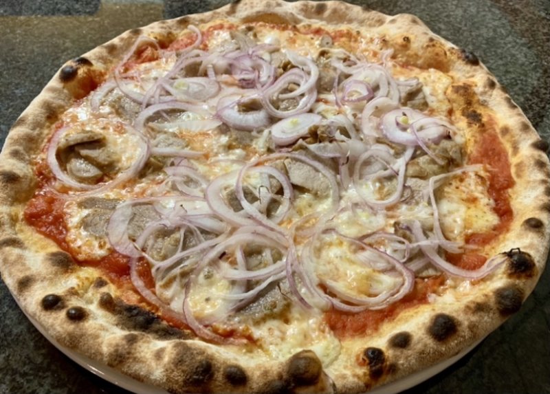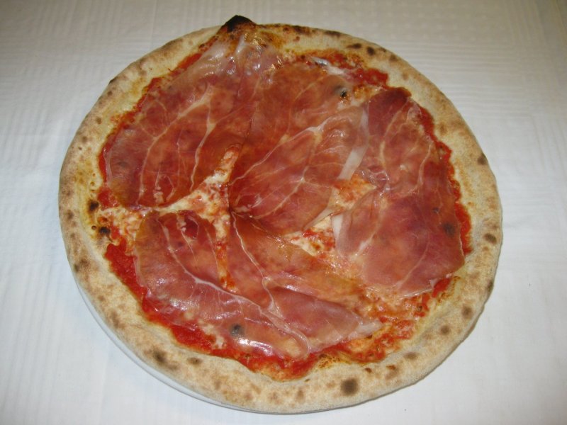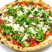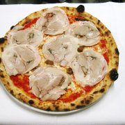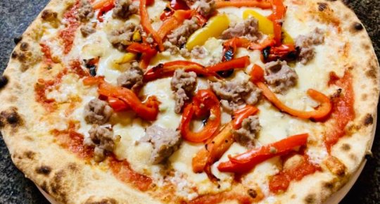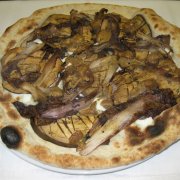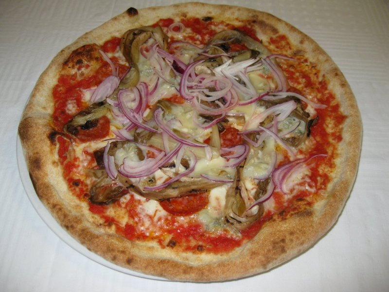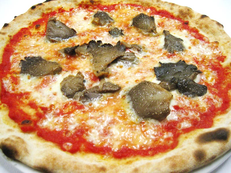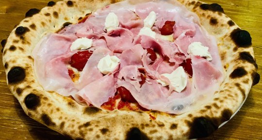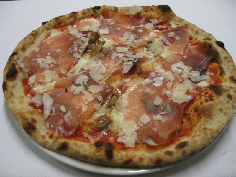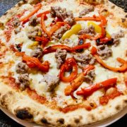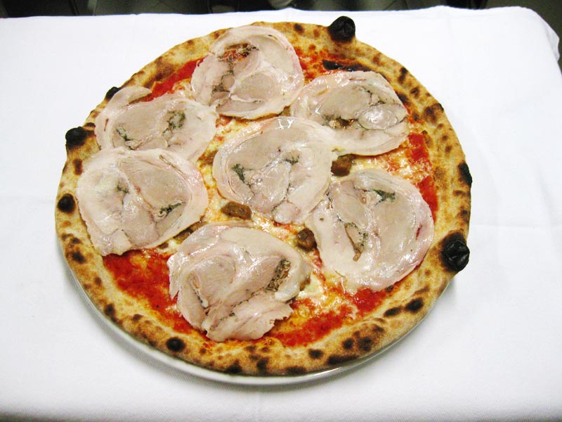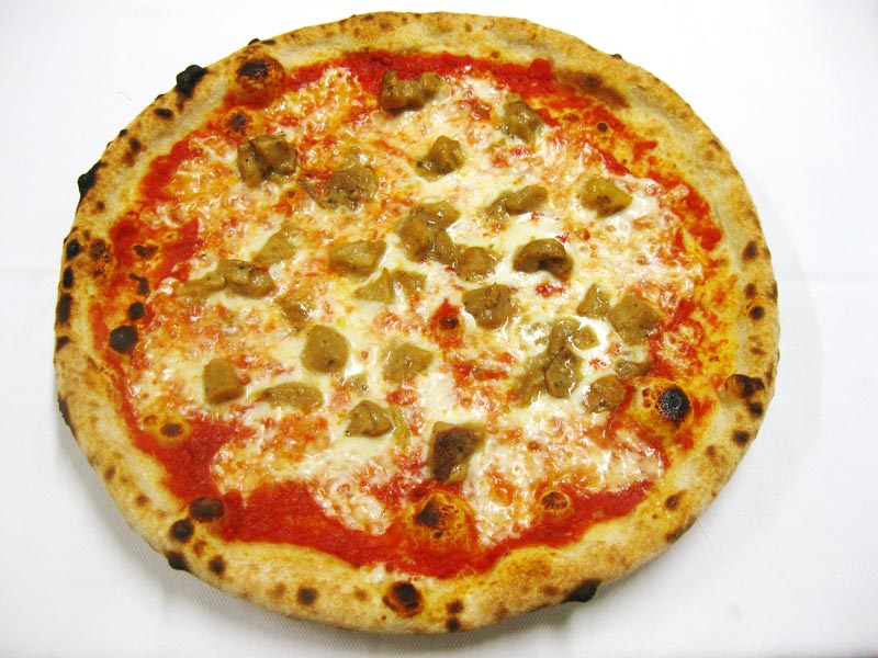 Polpa di pomodoro, formaggio, salsa peperoni e funghi prataioli, pancetta nostrana