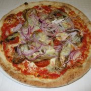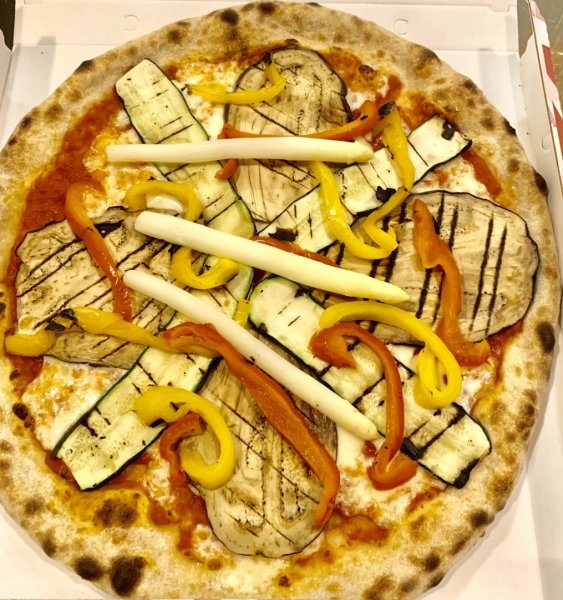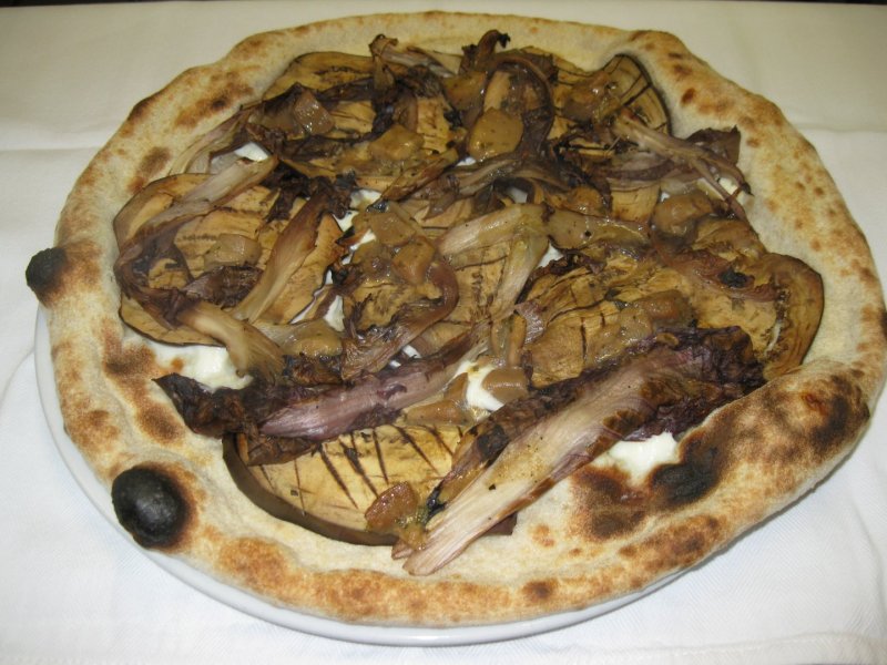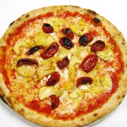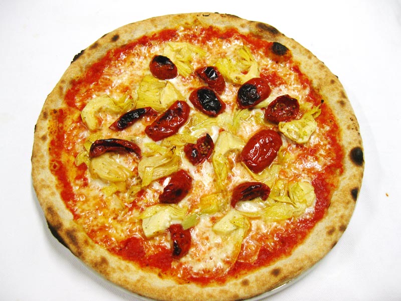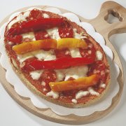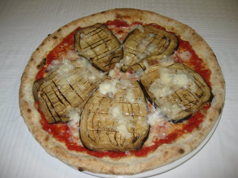 Polpa di pomodoro, formaggio, olive nere, peperoni, melanzane, pomodori Tuttosole