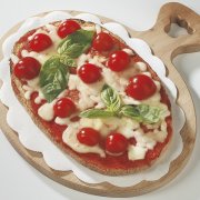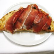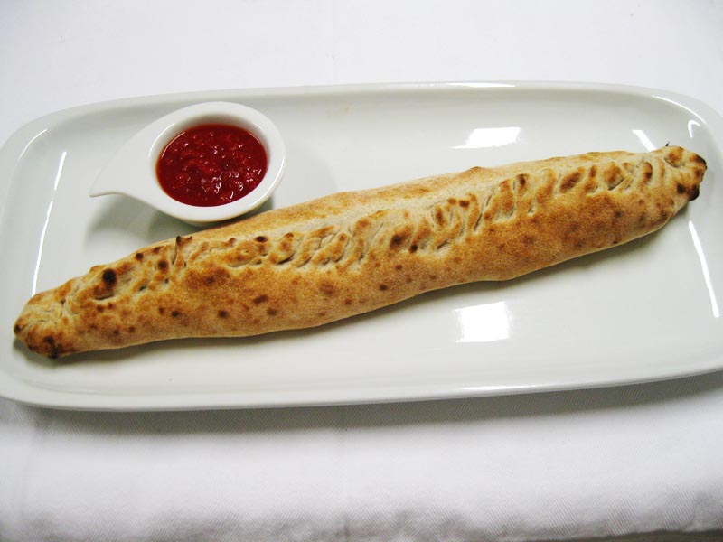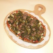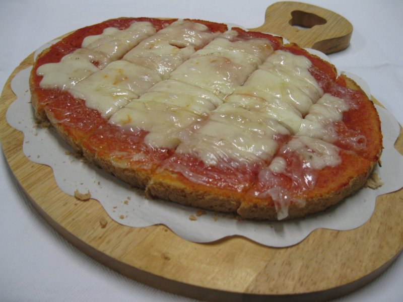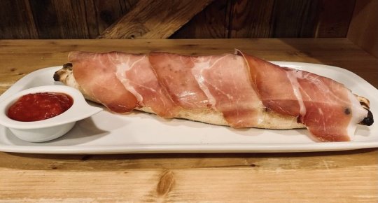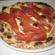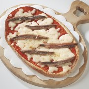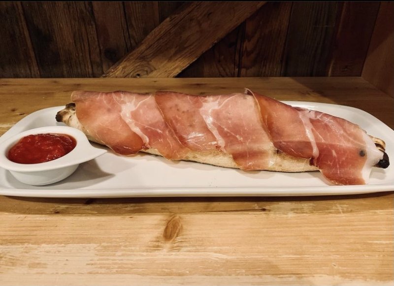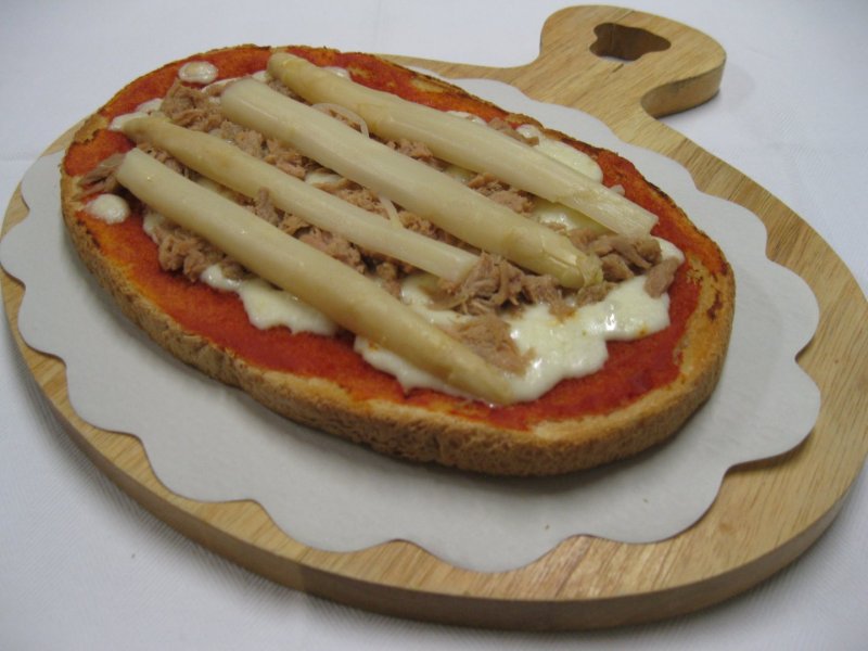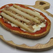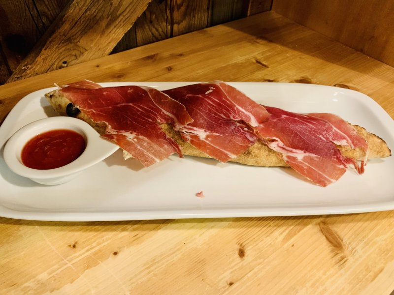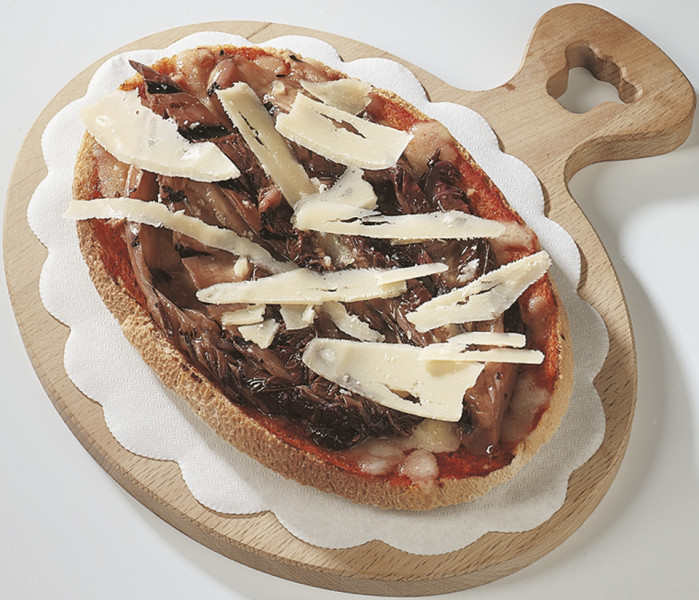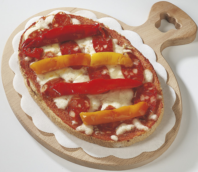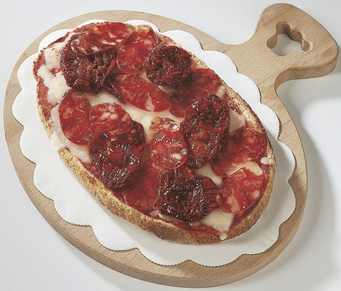 Polpa di pomodoro, formaggio, paté di olive, speck