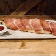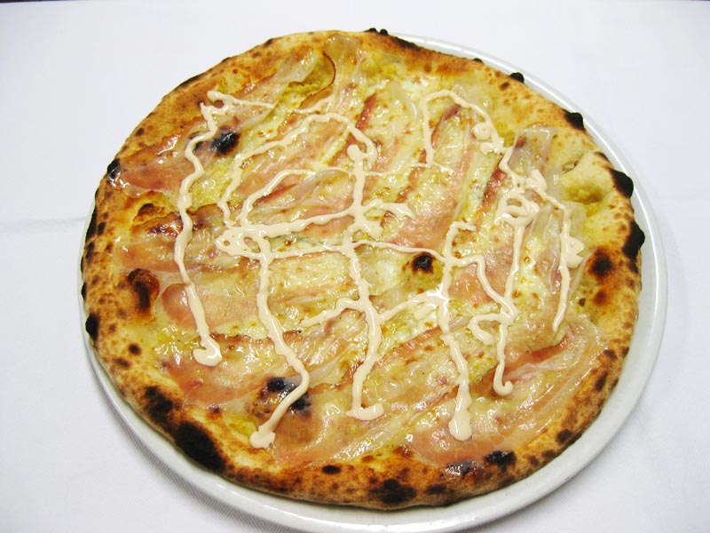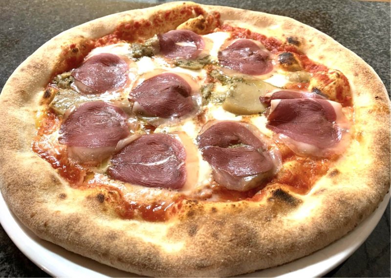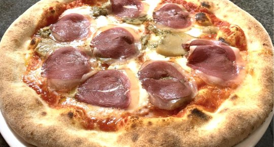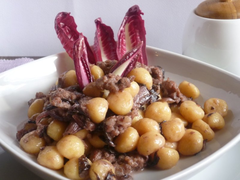 speck, gorgonzola, salsa radicchio