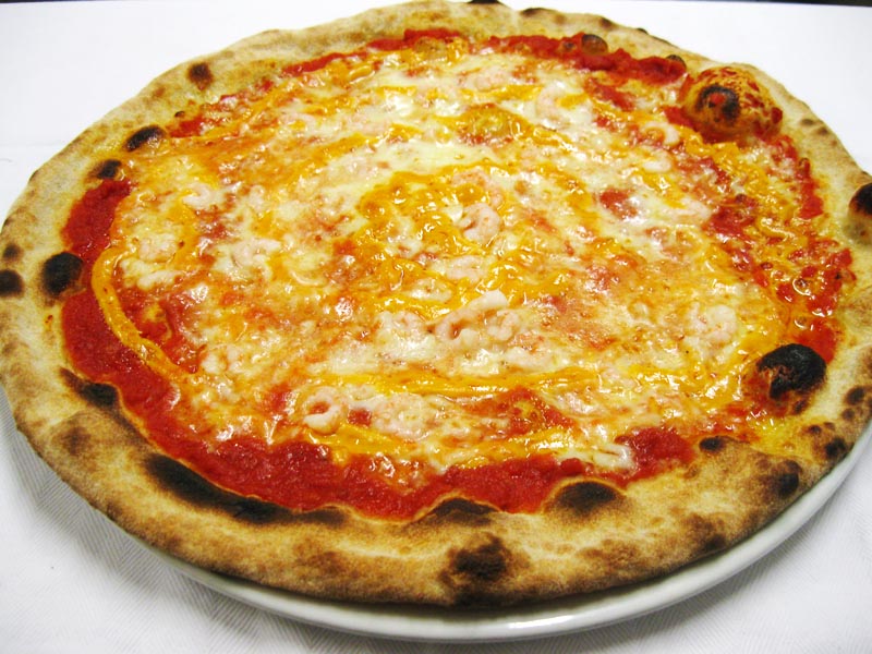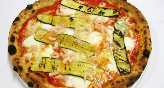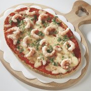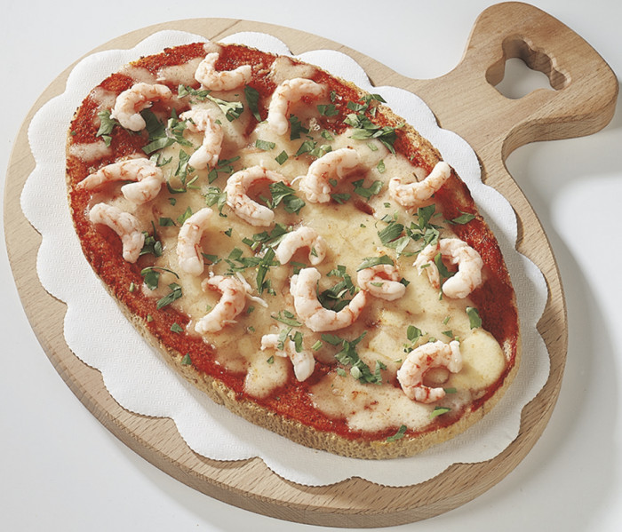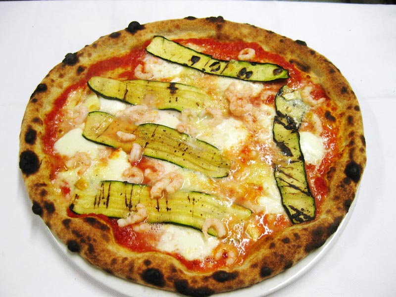Polpa di pomodoro, formaggio, zucchine e gamberetti