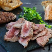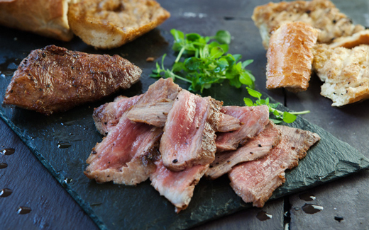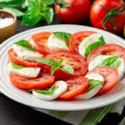 Pomodoro, mozzarella, marinata di chianina, scaglie di pecorino toscano