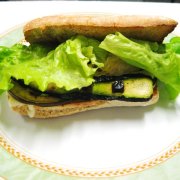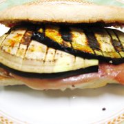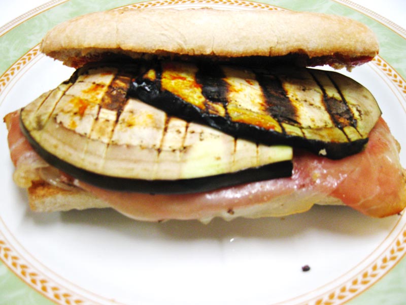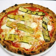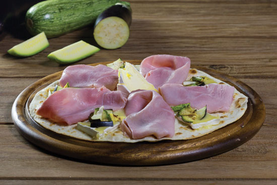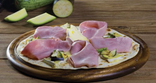 crema ai funghi, mozzarella, prosciutto cotto, zucchine ai ferri