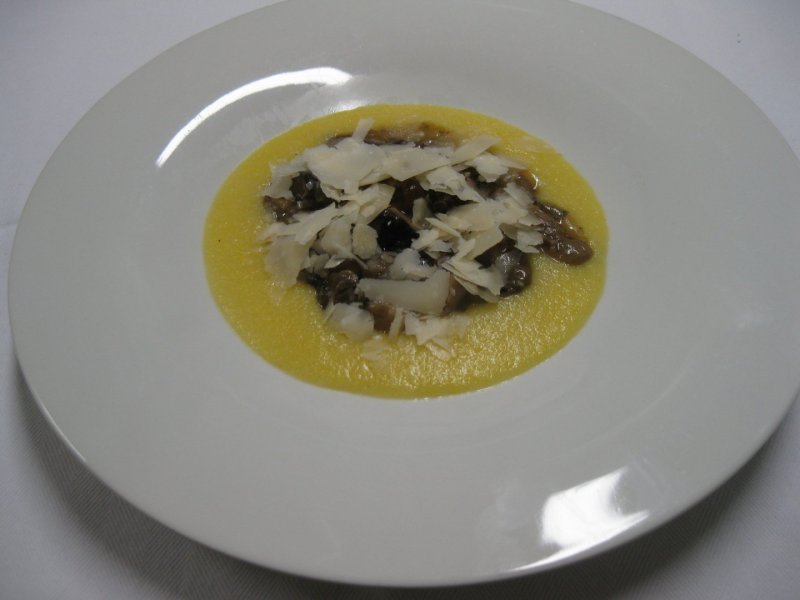 lattuga funghi prataioli grana a scaglie olive tagiasche mais