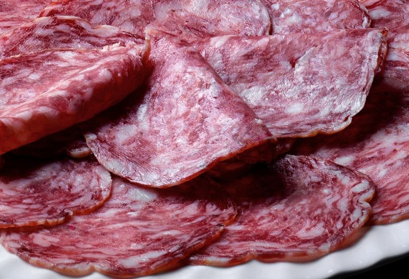tre fette di salame con zucchero a velo