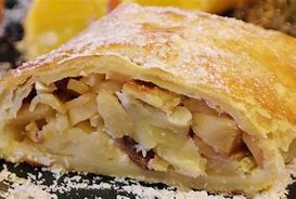di mele ,servito con crema alla vaniglia calda e panna